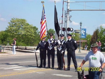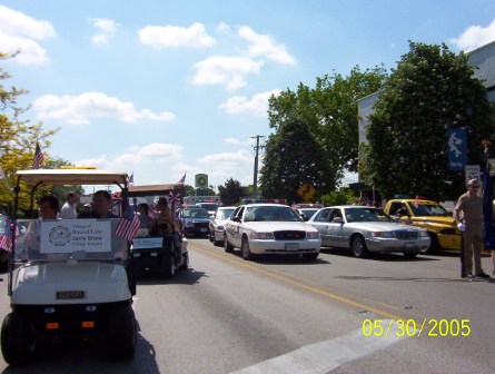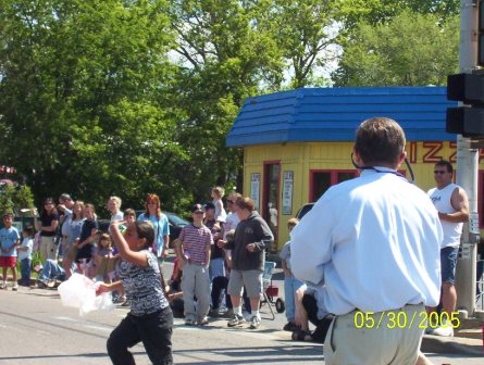 The first four pictures are of the small ceremony we have every year at our memorial here in Round Lake. The next three are me walking the route, throwing candy and the immense amount of people along the route. The second to last picture is the color guard that walked the route with the various service flags. The last picture is an homage to my official parade driver and photographer Denise Gentes my daughter who loves a parade as much as her dad!