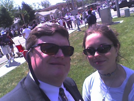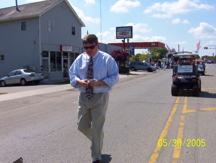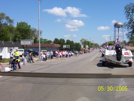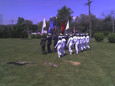 The first four pictures are of the small ceremony we have every year at our memorial here in Round Lake. The next three are me walking the route, throwing candy and the immense amount of people along the route. The second to last picture is the color guard that walked the route with the various service flags. The last picture is an homage to my official parade driver and photographer Denise Gentes my daughter who loves a parade as much as her dad!