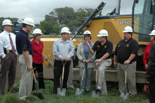 In the second picture Trustee's Bob Del Prato, Don Newby, Pat Blauvelt, Brian Brubaker, Village Clerk Jeanne Kristan, Finance Director Maggie Molidor, Police Chief Cliff Metaxa and me all dig in to get the project underway!